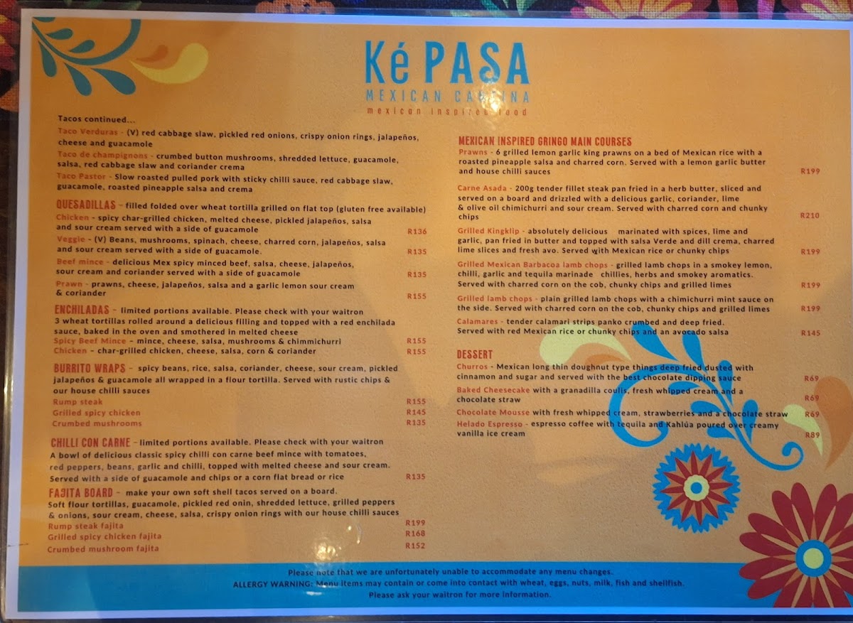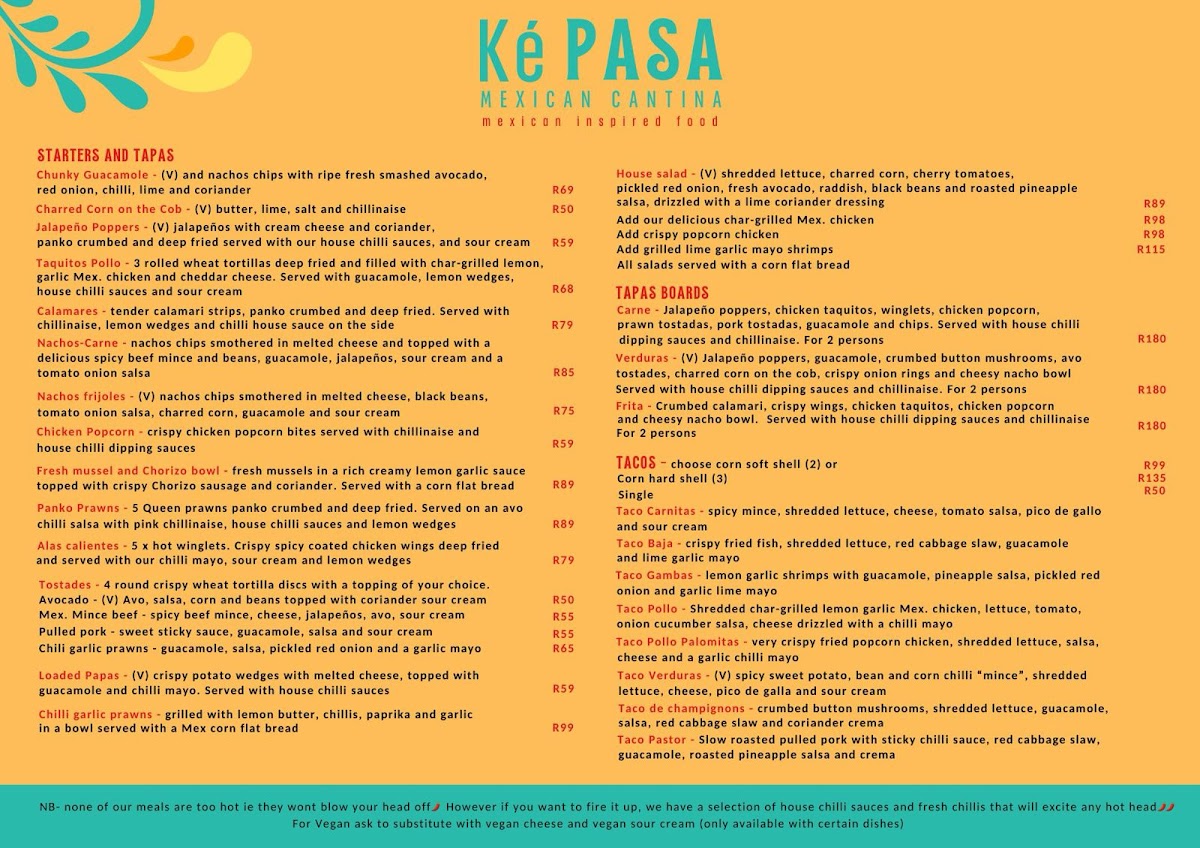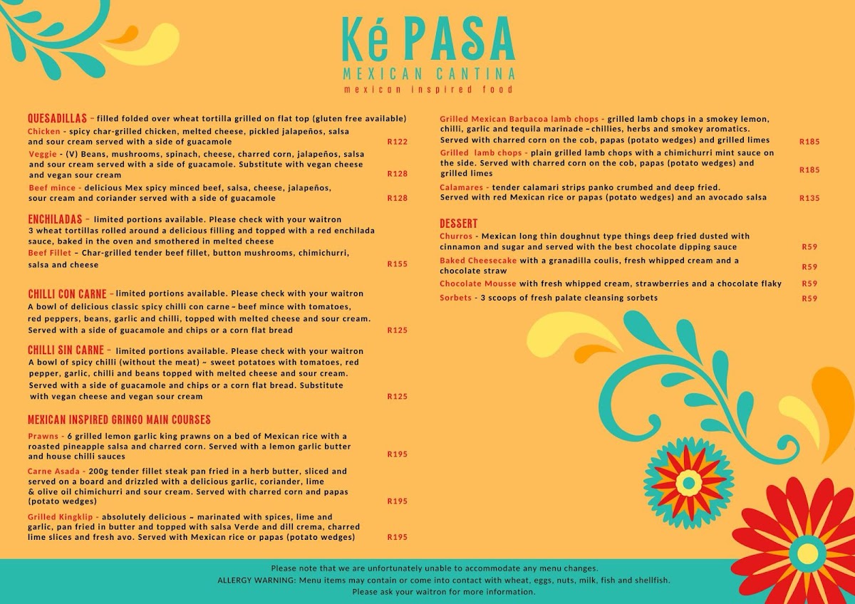 Ke Pasa Mexican Restaurant offers a menu that balances simple, comforting dishes with vibrant, authentic Mexican flavors. The selection features casual bites perfect for sharing, alongside hearty options that satisfy a wide range of tastes. Whether you’re stopping by for a relaxed lunch, a casual dinner, or an easy-going night out, the food and drinks complement the inviting, warm atmosphere of the venue.